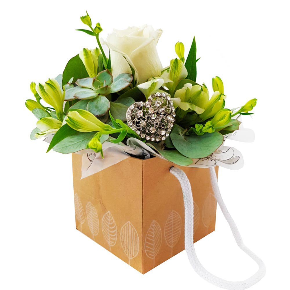 Send a sentiment of your affection with this beautiful little surprise. Delivered same day when you order before 2pm.Please note: the gift bag style may vary from the one pictured. The florist may substitute individual flowers at their discretion.